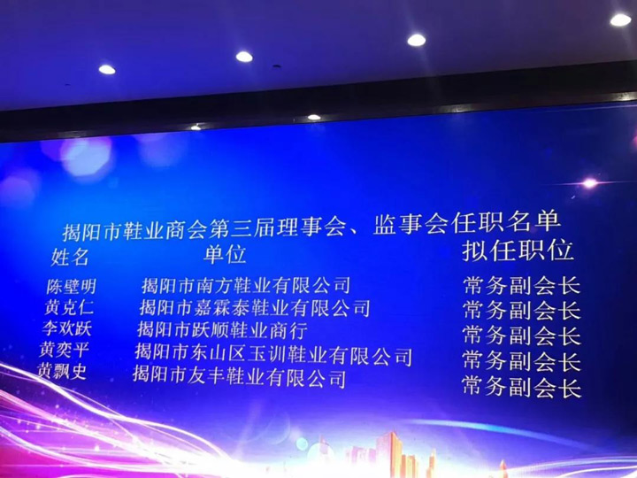 2018年1月7日,商會在榕江大酒店召開“揭陽市鞋業(yè)商會第三屆會員代表大會第一次全體會議”。市民政局領導及一百多家商會會員代表參加了會議。